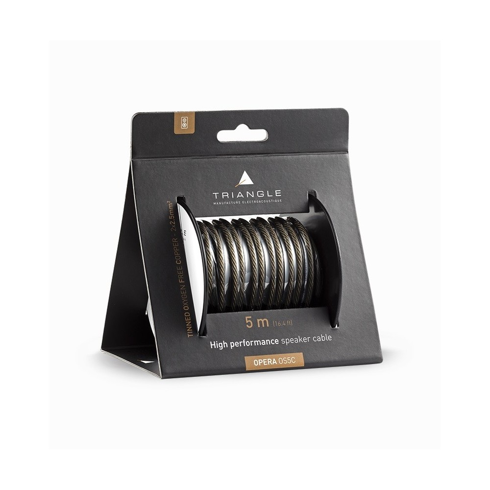 Høyttalerkabel fra den franske høyttalerprodusenten Triangle. Kablen kommer på rull av 5 eller 10 meter. Lederne har tverrsnitt på 2,5 mm2 og er laget av kobber med svært høy renhet. Disse er videre tinnbelagt for å sikre mot korrodering og oksidasjon.