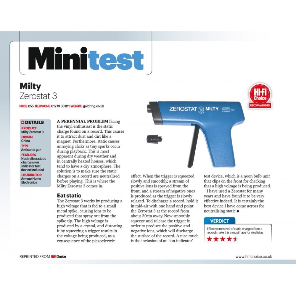 Hi-Fi Choice har testet denne og skriver i sin konklusjon at Zerostat 3 er et "must have".